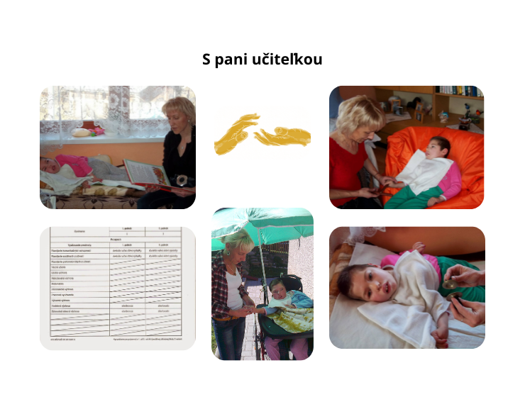 Mama nás sleduje, ako sa spolu učíme. S pani učiteľkou skonštatovali, že som spoločenská a rada sa zapájam do aktivít. No škoda, že nemôžem chodiť, že si sama neviem sadnúť. To by ste sa čudovali, čo všetko by som vám ukázala a vedela robiť.